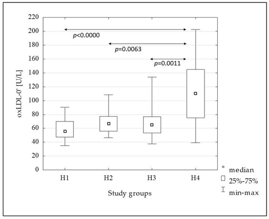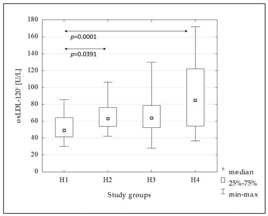 The comparison of the oxLDL-120’ concentration between the H1–H4 subgroups.