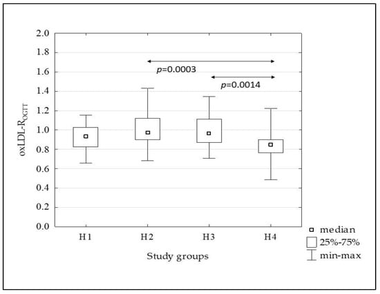 The comparison of the oxLDL-ROGTT ratio between the H1–H4 subgroups.