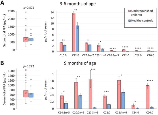 3.2. Serum NEFA Profiles at 3–6 and 9 Months of Age in Pakistan Children