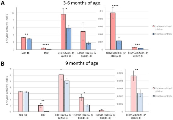 - Marin, M.C.; De Tomas, M.E.; Mercuri, O.; Fernandez, A.; de Serres, C.T. Interrelationship between protein-energy malnutrition and essential fatty acid deficiency in nursing infants. Am. J. Clin. Nutr. 1991, 53, 466–468. [Google Scholar] [CrossRef] [PubMed]