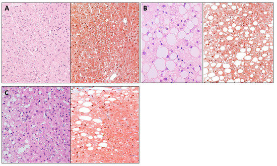 - Kleiner, D.E.; Brunt, E.M.; Van Natta, M.; Behling, C.; Contos, M.J.; Cummings, O.W.; Ferrell, L.D.; Liu, Y.-C.; Torbenson, M.S.; Unalp-Arida, A.; et al. Design and Validation of a Histological Scoring System for Nonalcoholic Fatty Liver Disease. Hepatology 2005, 41, 1313–1321. [Google Scholar] [CrossRef] [PubMed]