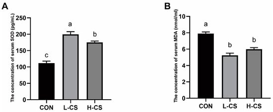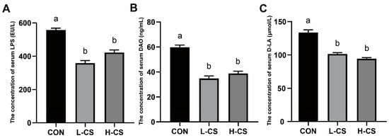 | Items (mg/kg) | CON | L-CS | H-CS | SEM | p-Value |