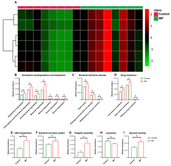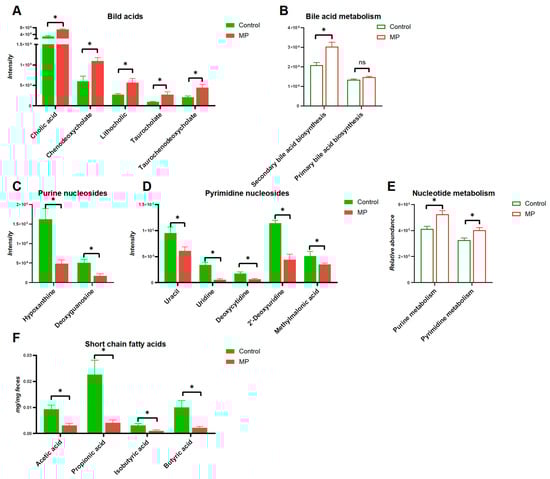 3.3. MP Alters Metabolite Profiles of the Gut Microbiome