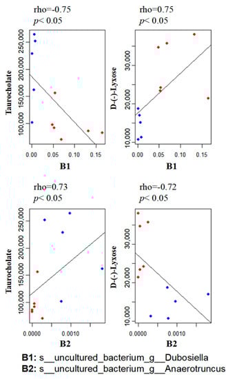 3.5. Correlation between the Gut Microbiome and Metabolites