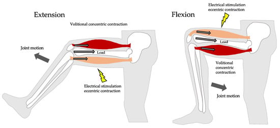 - Yanagi, T.; Shiba, N.; Maeda, T.; Iwasa, K.; Umezu, Y.; Tagawa, Y.; Matsuo, S.; Nagata, K.; Yamamoto, T.; Basford, J.R. Agonist contractions against electrically stimulated antagonists. Arch. Phys. Med. Rehabil. 2003, 84, 843–848. [Google Scholar] [CrossRef] [PubMed]