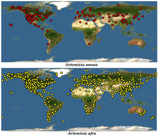 Global distribution of A. annua and A. afra [21].