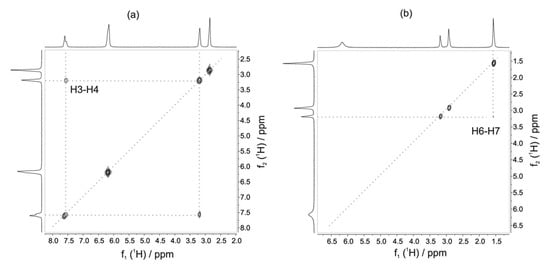 2D 1H-1H COSY spectrum of the formation of methyl formate (a) and methyl acetate (b). Reproduced with permission from A. Friebel et al. [39].