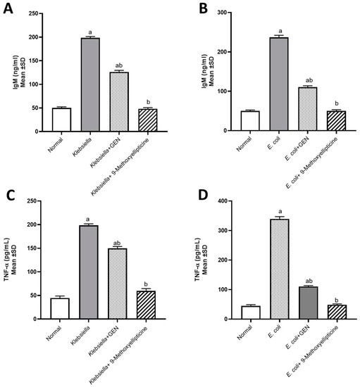 | Normal Control | Model Control K. pneumoniae | 9-Methoxyellipticine-Treated Group | GEN-Treated Group | |