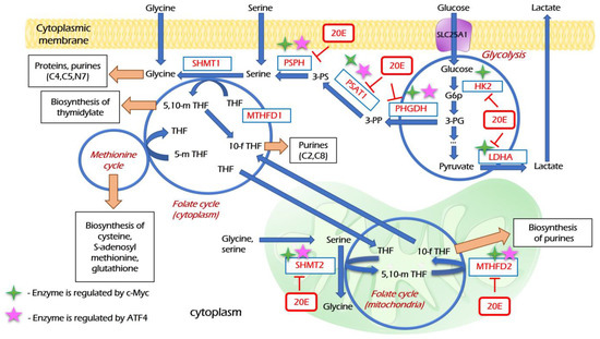 3.4. 20E Down-Regulates Enzymes of Glycolysis and One-Carbon Metabolism