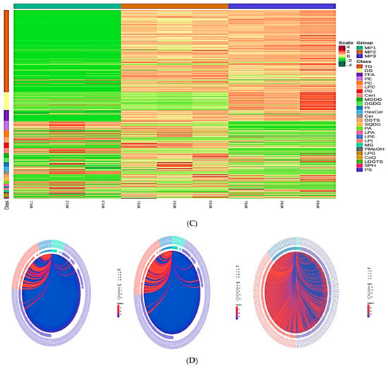 3.3. Lipid Metabolites Composition and Changes in Subclass Content