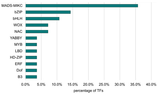 Percentage of TF families identified among all TFs that were DEGs in the FvM comparison.