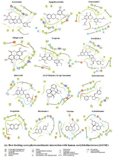 - Ali, S.K.; Hamed, A.R.; Soltan, M.M.; El-Halawany, A.M.; Hegazy, U.M.; Hussein, A.A. Kinetics and molecular docking of Vasicine from Adhatoda vasica: An acetylcholinesterase inhibitor for Alzheimer’s disease. S. Afr. J. Bot. 2016, 104, 118–124. [Google Scholar] [CrossRef]