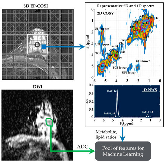 - Thakur, S.B.; Horvat, J.V.; Hancu, I.; Sutton, O.M.; Bernard-Davila, B.; Weber, M.; Oh, J.H.; Marino, M.A.; Avendano, D.; Leithner, D. Quantitative in vivo proton MR spectroscopic assessment of lipid metabolism: Value for breast cancer diagnosis and prognosis. J. Magn. Reson. Imaging 2019, 50, 239–249. [Google Scholar] [CrossRef] [PubMed]