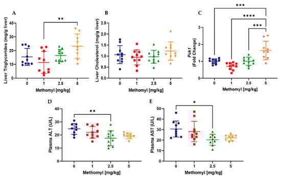 3.4. Effects of Methomyl Exposure on Liver Oxidative Stress