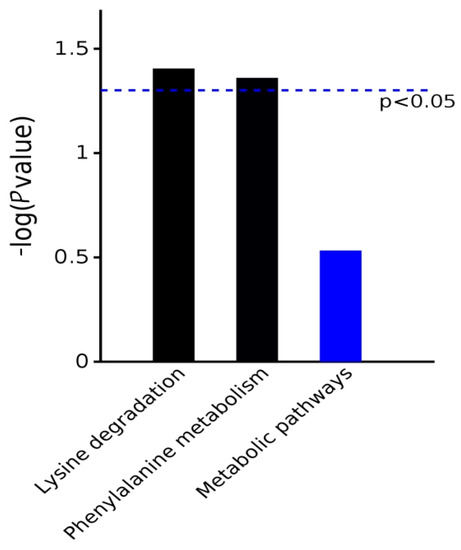The differential metabolites obtained from the example group were submitted to the KEGG website for pathway analysis to obtain the metabolic pathways involved in the differential metabolites. The KEGG metabolic pathway analysis showed that the differential proteins were enriched in the two pathways of lysine degradation and phenylalanine metabolism (Chart 3).