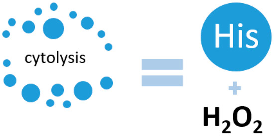 Activation of cell cytolysis due to the interaction of His and hydrogen peroxide.