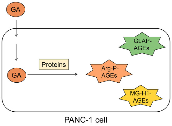 - Takata, T.; Ueda, T.; Sakasa-Sakai, A.; Takeuchi, M. Generation of glyceraldehyde-derived advanced glycation end-products in pancreatic cancer cells and the potential of tumor promotion. World J. Gastroenterol. 2017, 23, 4910–4919. [Google Scholar] [CrossRef] [PubMed]