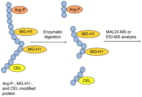 - Lapolla, A.; Fedele, D.; Seraglia, R.; Traldi, P. The Role of Mass Spectrometry in the Study of Non-Enzymatic Protein Glycation in Diabetes: An update. Mass Spectrom. Rev. 2006, 25, 775–797. [Google Scholar] [CrossRef] [PubMed]