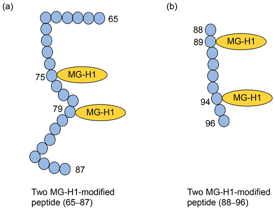 - Ahmed, N.; Thornalley, P.J. Peptide Mapping of Human Serum Albumin Modified Minimally by Methylglyoxal In Vitro and In Vivo. Ann. N. Y. Acad. Sci. 2005, 1043, 260–266. [Google Scholar] [CrossRef]