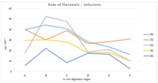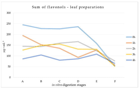 3.1.2. Flavonols Content at Different Stages of Digestion of Leaf Preparations
