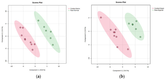4.1. Impact of Packaging Type and Cooking on Metabolites