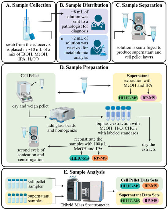 - Tokareva, A.; Chagovets, V.; Attoeva, D.; Starodubtseva, N.; Nazarova, N.; Gusakov, K.; Kukaev, E.; Frankevich, V.; Sukhikh, G. Non-Invasive Differential Diagnosis of Cervical Neoplastic Lesions by the Lipid Profile Analysis of Cervical Scrapings. Metabolites 2022, 12, 883. [Google Scholar] [CrossRef] [PubMed]