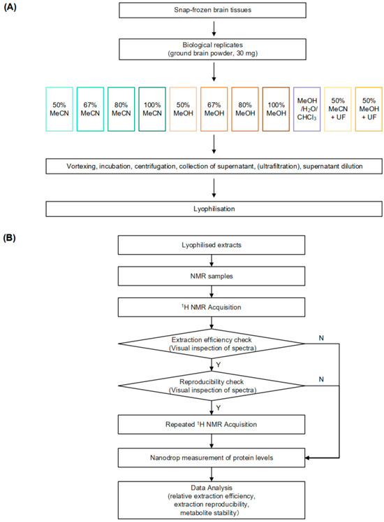Xiong, W.; Zirpel, F.; Cader, M.Z.; Anthony, D.C.; Probert, F. Extraction Methods for Brain Biopsy NMR Metabolomics: Balancing Metabolite Stability and Protein Precipitation. Metabolites 2024, 14, 609. https://doi.org/10.3390/metabo14110609