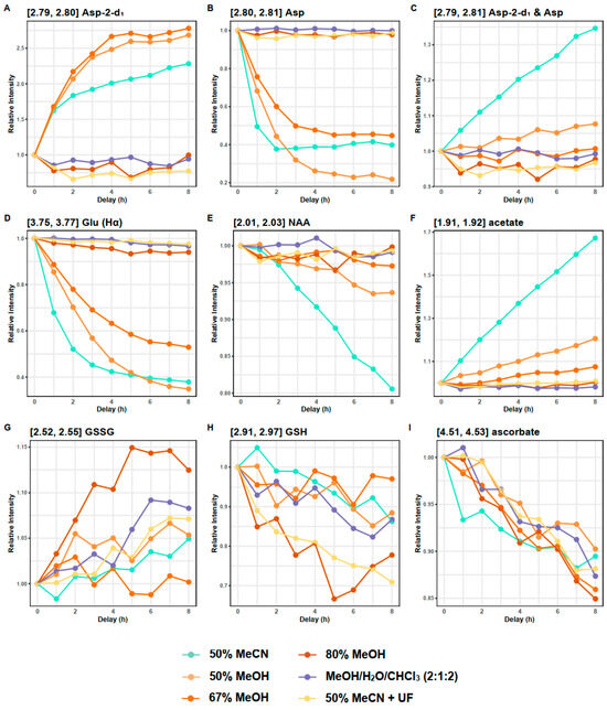 - Lin, C.Y.; Wu, H.; Tjeerdema, R.S.; Viant, M.R. Evaluation of Metabolite Extraction Strategies from Tissue Samples Using NMR Metabolomics. Metabolomics 2007, 3, 55–67. [Google Scholar] [CrossRef]