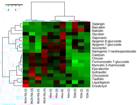 Heatmap of flavonoids identified by untargeted metabolomics analysis.