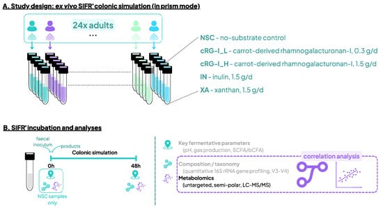 - Van den Abbeele, P.; Deyaert, S.; Albers, R.; Baudot, A.; Mercenier, A. Carrot RG-I Reduces Interindividual Differences between 24 Adults through Consistent Effects on Gut Microbiota Composition and Function ex vivo. Nutrients 2023, 15, 2090. [Google Scholar] [CrossRef]