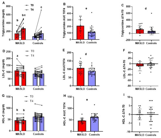 3.2. Fasting and 4-h Postprandial Plasma LDL-C and HDL-C Concentrations in Patients with MASLD and Healthy Liver Controls