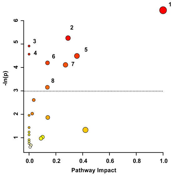 - Xia, J.; Wishart, D.S. MetPA: A web-based metabolomics tool for pathway analysis and visualization. Bioinformatics 2010, 26, 2342–2344. [Google Scholar] [CrossRef] [PubMed]