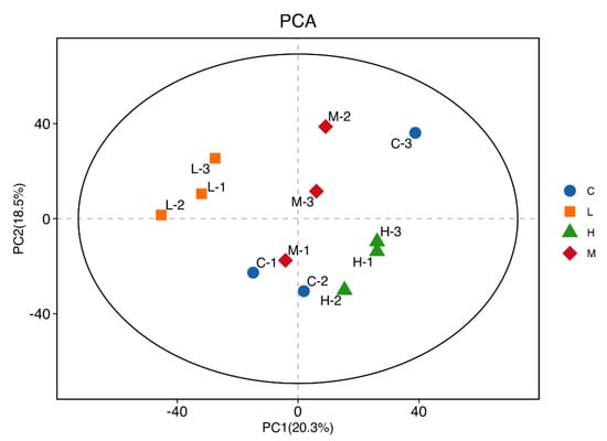 RNA was extracted from larvae for real-time (RT) fluorescence quantitative polymerase chain reaction (PCR) analysis. Total RNA was reverse-transcribed into cDNA using a Prime Script RT reagent kit (TaKaRa, Shiga, Japan) and stored at −80 °C. RT–quantitative PCR (RT-qPCR) was then performed using CFX96 RT-PCR equipment (BioRad, Hercules, CA, USA) and the Trans Start Top Green qPCR Super Mix (Transgenics, Beijing, China). Ten target genes were selected for qRT-PCR analysis based on the results of transcriptome sequencing, which we have only just sequenced. Sequence reliability was verified. Primers for all 10 target genes were designed using Primer 5.0 (PREMIER Biosoft, Palo Alto, CA, USA), as shown in Table 1. Each primer pair was verified with gel electrophoresis before being used for qPCR. Specific metabolic-related gene primers and sequences are shown (Table 1). The qPCR assays were conducted in triplicate, using the β-actin gene as an internal control to standardize the expression levels of the target genes and group M as the control group. The relative quantification of qPCR data was determined using the 2−ΔΔCt method.