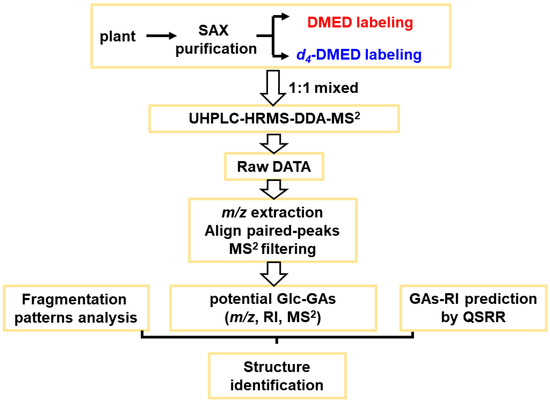- Cai, W.-J.; Zeng, C.; Zhang, X.-Y.; Ye, T.; Feng, Y.-Q. A Structure–Guided Screening Strategy for the Discovery and Identification of Potential Gibberellins from Plant Samples Using Liquid Chromatography–Mass Spectrometry Assisted by Chemical Isotope Labeling. Anal. Chim. Acta 2021, 1163, 338505. [Google Scholar] [CrossRef] [PubMed]