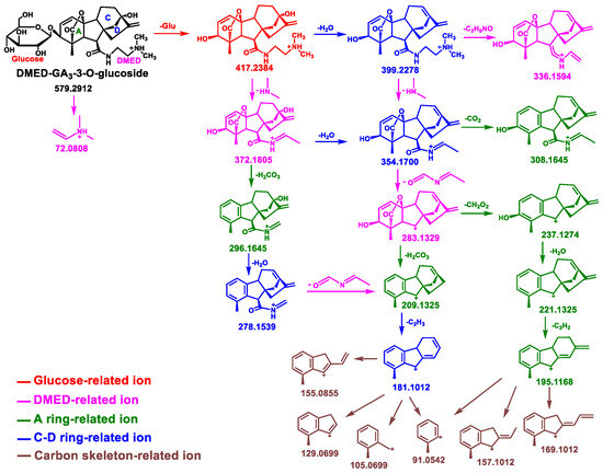 3.2. Analysis of Mass Fragmentation Behavior of Glc–GAs–Labeled Products