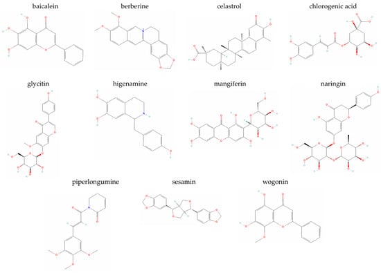 Apart from the above-mentioned natural compounds with a reported anti-senescence mode of action in the IVD, there are also other plant-derived metabolites (Figure 2) that have been demonstrated to exert beneficial effects in the IVD or the closely related cartilage in vitro or in vivo, as well (Table 2). Even though in these cases the conferred protective effects have not been tested for their association with a senotherapeutic action in the IVD thus far, anti-oxidant, anti-inflammatory and anti-catabolic properties have been described for them, rendering them ideal candidates in the pursuit of novel senomorphics for the particular tissue. For example, (i) baicalein has been shown to inhibit IL-1β-induced inflammatory response and ECM degradation in rat NP IVD cells in vitro and to attenuate IDD in vivo [], as well as to alleviate TNF-α-induced MMP-2 and -9 up-regulation in human NP IVD cells []; (ii) berberine has been shown to inhibit the TBHP-induced production of ECM-degrading enzymes in rat NP IVD cells in vitro and to prevent the development of IDD in a needle puncture-induced rat model []; (iii) celastrol has been reported to suppress IL-1β-stimulated up-regulation of COX-2, IL-6, PEG2 and MMP-13 in rat chondrocytes in vitro and to delay the progression of cartilage damage in an OA rat model [], to play an anti-inflammatory role in rheumatoid arthritis and to suppress the expression of MMP-1, -3 and -13, COX-2, iNOS and HSP90β in primary human OA chondrocytes [,], to reduce the production of inflammatory mediators preventing the destruction of articular cartilage after intra-articular injection in a MIA-induced knee OA rat model [], to reduce IL-1β-induced ECM catabolism, oxidative stress and inflammation in human NP IVD cells and to attenuate rat IDD in vivo [] and most importantly to be able to target multiple genes involved in cellular senescence in OA based on a comparative transcriptomics and network pharmacology analysis []; (iv) chlorogenic acid has been reported to mitigate cartilaginous endplate degeneration and to postpone IDD development in a lumbar spine instability IDD mouse model []; (v) glycitin has been reported to antagonize TNF-α-induced cartilage degeneration and inflammation in primary mouse chondrocytes and TNF-α-induced inflammatory response and ECM catabolism in human NP IVD cells in vitro, while its intraperitoneal administration rescued tissue destruction in an anterior cruciate ligament transection OA mouse model and a puncture-induced IDD rat model [,]; (vi) higenamine has been shown to attenuate IL-1β-induced elevation of ROS levels, inflammatory mediators and catabolic markers in human NP IVD cells [,]; (vii) mangiferin treatment has been shown to decrease proliferation, migration and secretion of inflammatory cytokines and MMPs and to promote apoptosis of fibroblast-like synoviocytes in vitro, as well as to alleviate arthritis index, to down-regulate the production of inflammatory mediators and ECM-degrading enzymes and to ameliorate oxidative stress in the plasma and the synovial tissue in an adjuvant-induced arthritis rat model []. Furthermore, mangiferin has been reported to attenuate inflammatory responses, to reverse the loss of ECM components, to reduce ROS production and to ameliorate mitochondrial damage in TNF-α-stimulated human NP IVD cells and cultured mouse IVD tissues, as well as to protect against IDD in a puncture-induced rat IDD model []; (viii) naringin has been shown to inhibit cyclic stretch-induced mitochondrial membrane potential depolarization and oxidative stress in rat AF IVD cells in vitro and to marginally decrease Pfirrmann MRI grades in a static and dynamic imbalance-induced IDD rat model [], to protect human NP IVD cells against TNF-α- and IL-1β-induced inflammation, oxidative stress and loss of cellular homeostasis [,] and to increase the expression of type II collagen and aggrecan in human NP IVD cells isolated from degenerated IVD specimens []; (ix) piperlongumine—with an established senolytic activity in ionizing radiation-induced senescent normal human WI-38 fibroblasts [] and having emerged as the top-runner in a computational screening for natural senotherapeutic repurposing candidates that mimic dasatinib based on gene expression data []—has been reported to rescue IL1β-induced elevated levels of oxidative stress in cartilage explants and to reduce the expression of major inflammatory markers in a goat ex vivo OA model []; (x) sesamin has been found to protect against IDD based on a network pharmacology analysis [] and to inhibit LPS-induced inflammation and ECM catabolism in the rat IVD in vitro and ex vivo [], while its intradiscal injection in a rat tail disc has been shown to protect from lesion-induced IDD in vivo []; (xi) wogonin has been reported to suppress inflammatory mediators and ECM-degrading enzymes and to up-regulate type II collagen in IL-1β-stimulated rat NP IVD cells and to ameliorate IDD in an in vivo rat caudal vertebrae needle-stab model [].