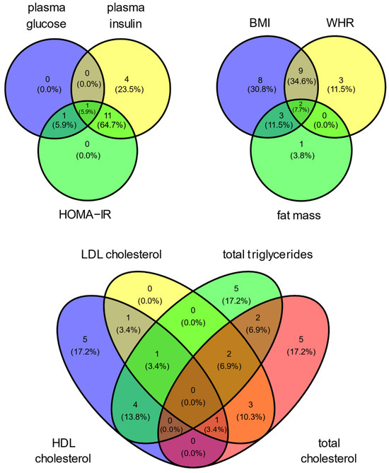 - Lagou, V.; Magi, R.; Hottenga, J.J.; Grallert, H.; Perry, J.R.B.; Bouatia-Naji, N.; Marullo, L.; Rybin, D.; Jansen, R.; Min, J.L.; et al. Sex-dimorphic genetic effects and novel loci for fasting glucose and insulin variability. Nat. Commun. 2021, 12, 24. [Google Scholar] [CrossRef] [PubMed]