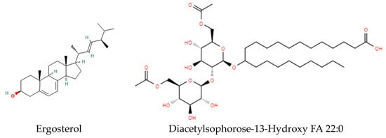 - Kawanami, J. Lipids of Streptomyces toyocaensis. On the structure of siolipin. Chem. Phys. Lipids 1971, 7, 159–172. [Google Scholar] [CrossRef] [PubMed]