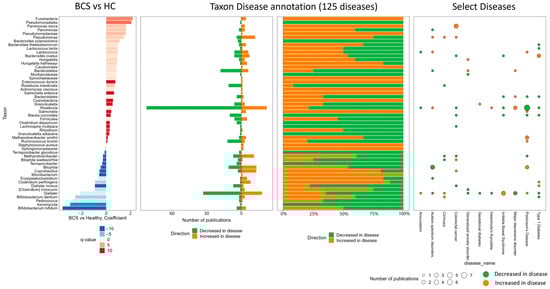 Gut Microbiome Metagenomics III. BCS v. HC taxon disease annotations and selected disease similarities.