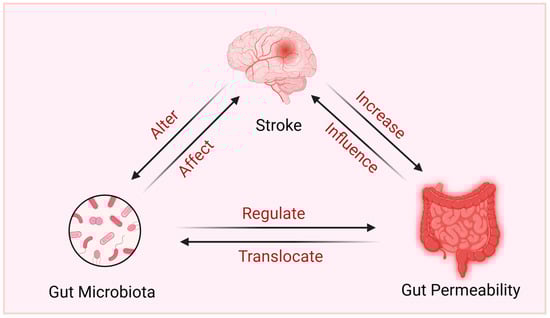 The relationship between stroke, gut microbiota, and gut permeability. Created with BioRender.com.