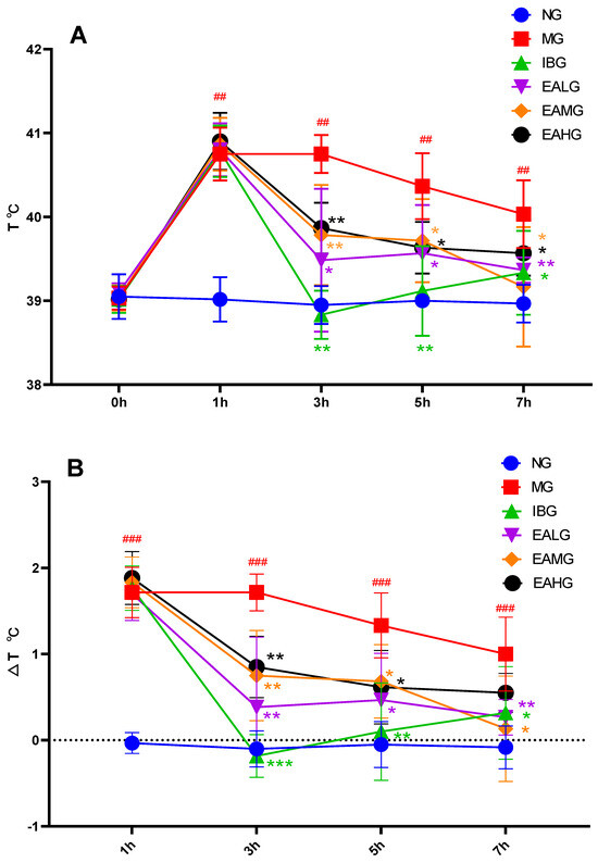 3.1. Effects of EA on LPS-Induced Fever in Rabbits