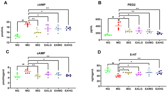 3.3. Effect of EA on cAMP and PGE2 in Cerebrospinal Fluid