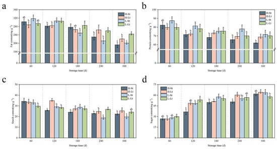 4.2. Changes in Nutritional Components during Seed Storage