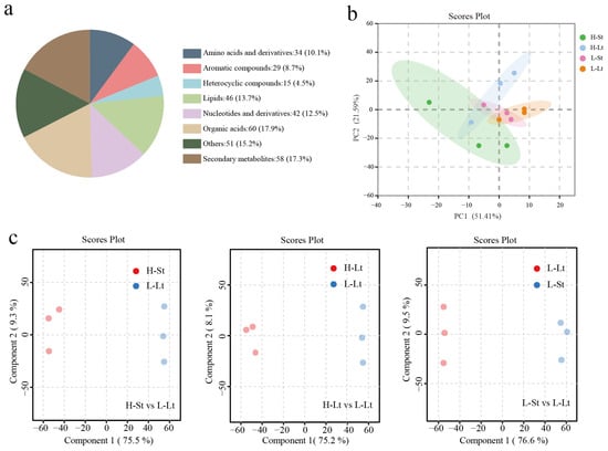 3.4.1. Differential Accumulation Analysis of Metabolites