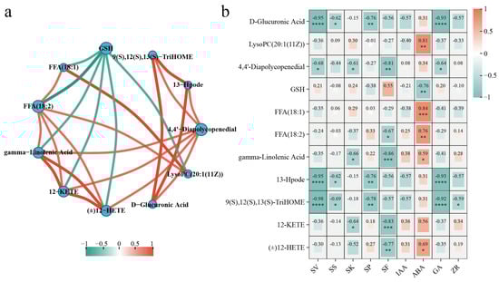 3.4.2. Analysis of the Important Metabolites and Metabolic Pathways