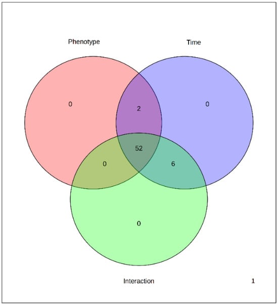 The multifactorial two-way ANOVA confirmed the significance of the data, which were further analysed through Multivariate Empirical Bayes Analysis of Variance (MEBA) for Time Series, a statistical approach commonly used to identify and analyse temporal patterns across multiple variables within time series data. The approach is designed to compare the time-course profiles under different conditions. The result is a list of variables ranked by their differences in temporal profiles across different biological conditions. The Hotelling-T2 was used to rank the variables with different temporal profiles between the biological conditions under study.