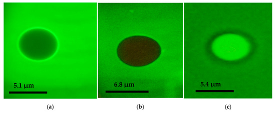 The polyethylene glycol microspheres produced were analyzed by fluorescence microscopy and flow cytometry. Fluorescence microscopy demonstrated that PEG microspheres can effectively adsorb melatonin extracted from colostrum in addition to synthetic melatonin (Figure 2b,c). The PEG microspheres exhibited spherical structures with consistent and stable sizes. However, the PEG microspheres that adsorbed melatonin from colostrum (Figure 2b) were larger compared to those that adsorbed synthetic melatonin (Figure 2c) and those that did not adsorb any melatonin (Figure 2a).
