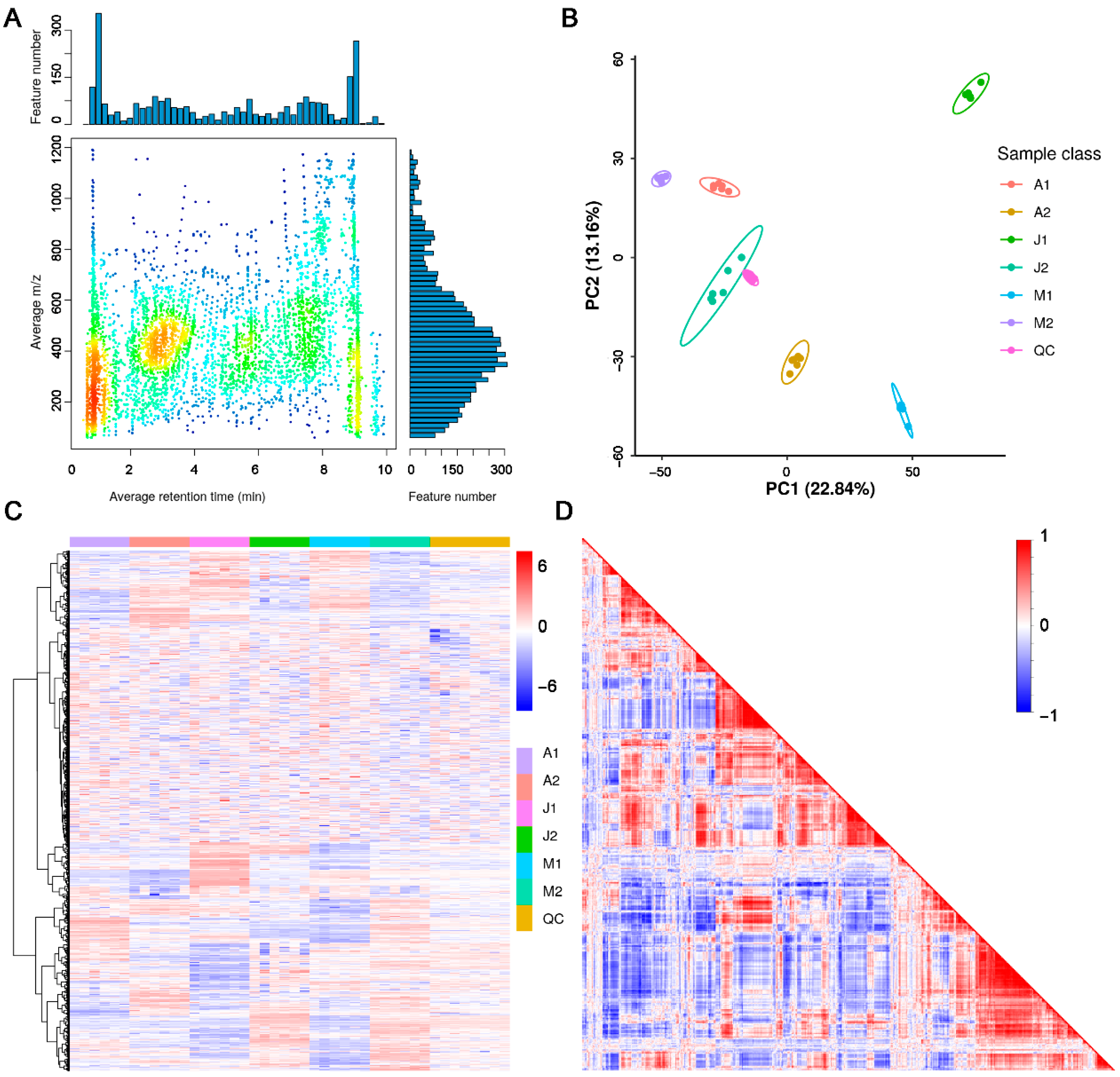 ID | Metabolite (MS2) | Superclass(MS2) | A2_vs_A1 | J2_vs_J1 | M2_vs_M1 | VIP (Max) |