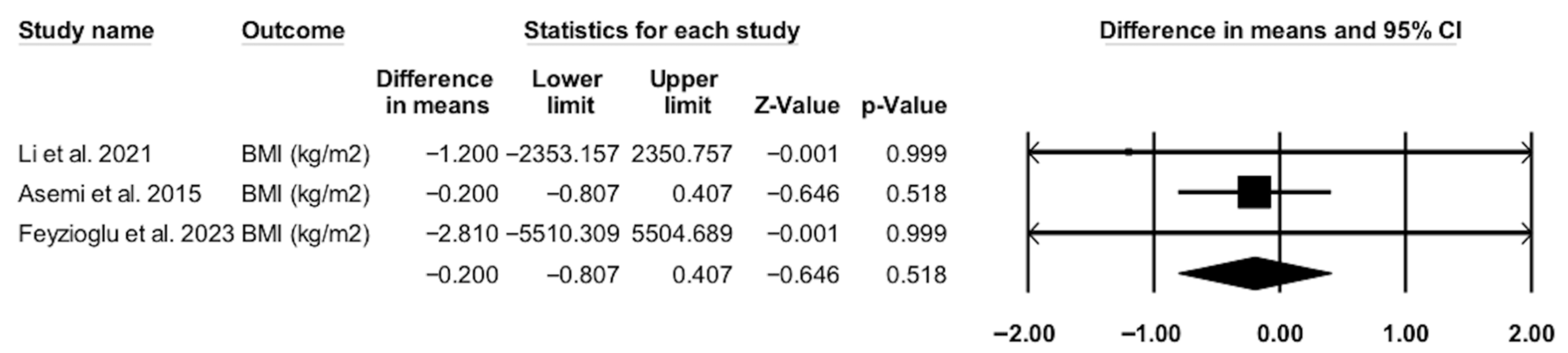 3.6. Effect of IF on Lipid Profile (Triglycerides, Total Cholesterol, and Low-Density Lipoprotein)