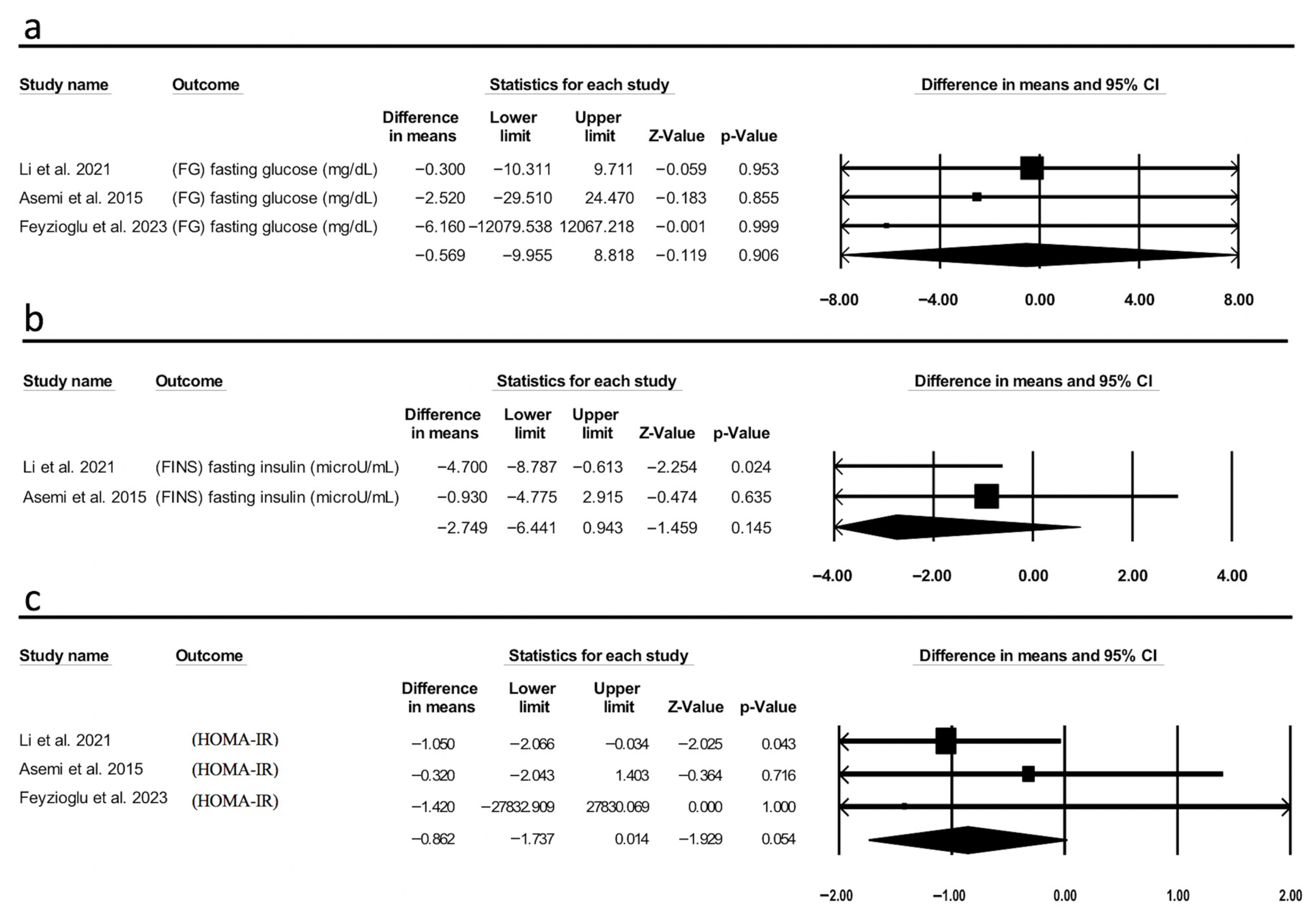 Chicago/Turabian StyleAolymat, Iman, Suhad Abumweis, Hafez Al-Momani, Diala Walid Abu-Hassan, Majd M. Albarakat, Ahmad Alzoubi, Mohammed Abu saleh, Ayah Khleaf Oleimat, Shaimaa Nasr Amin, Walaa Bayoumie El Gazzar, and et al. 2025. "The Impact of Intermittent Fasting on Metabolic and Hormonal Profile in Patients with Polycystic Ovary Syndrome: A Systematic Review and Meta-Analysis" Metabolites 15, no. 10: 654. https://doi.org/10.3390/metabo15100654